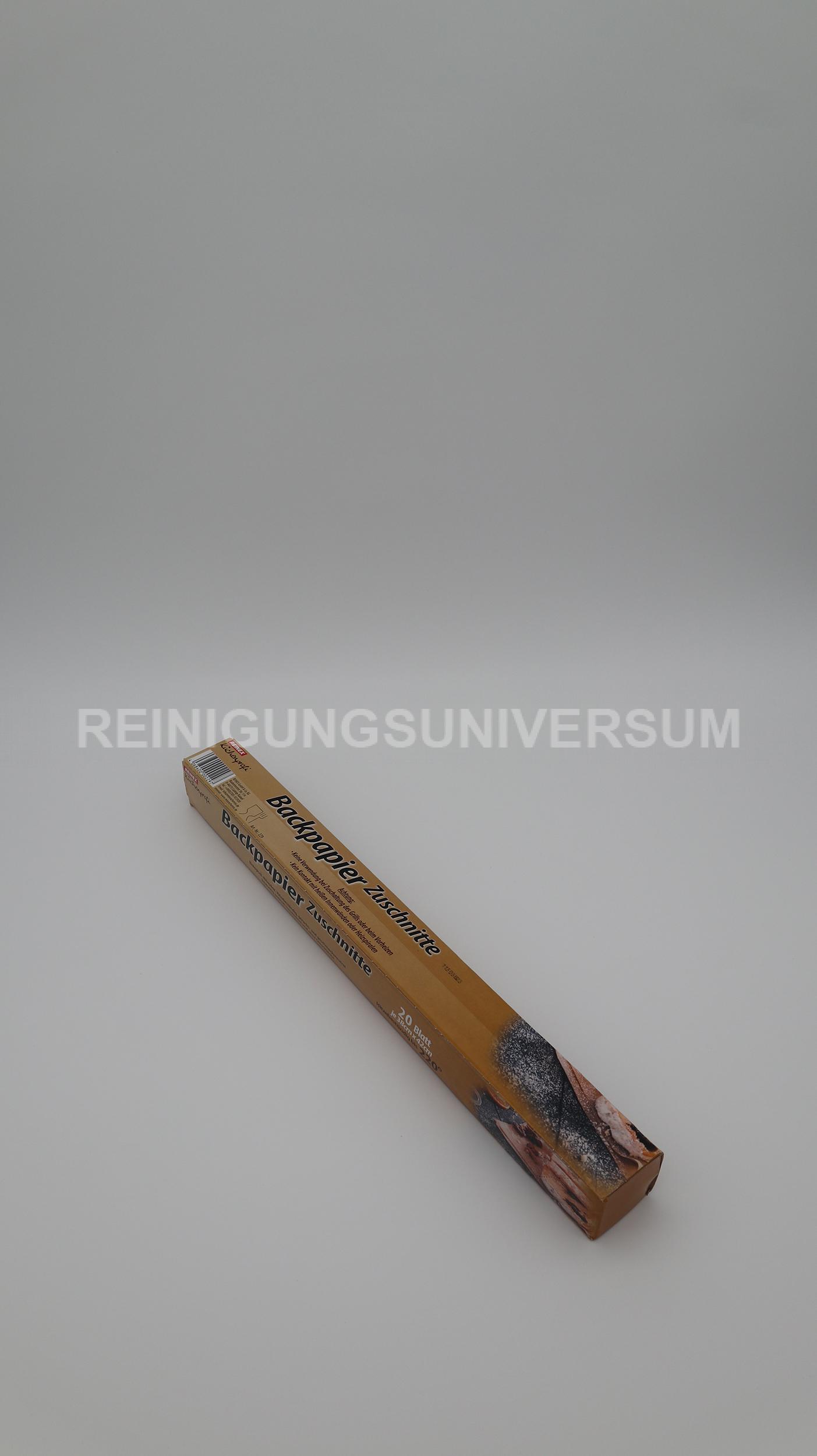 20 Blatt, 38 × 42 cm. Hitzebeständig, geruchs- und geschmacksneutral, beidseitig antihaftbeschichtet. Für Kuchen, Pizza, Gebäck uvm.